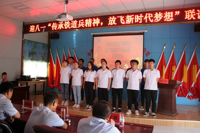 在魏總作了熱情洋溢的致辭后,18名老鐵道兵身著統(tǒng)一服裝,邁著整齊的步伐,雄糾糾氣昂昂地走上主席臺(tái),唱起了他們熟悉的《鐵道兵志在四方》,歌聲中,喚起他們深藏在內(nèi)心深處的情懷,重溫那段不平凡的經(jīng)歷,新入職員工被這種激情深深感染。