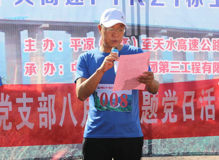 甘肅省公建集團(tuán)副經(jīng)理、平天高速平?jīng)龆雾?xiàng)目班主任李文芙講話 活動(dòng)開始前,公司副總經(jīng)理、項(xiàng)目負(fù)責(zé)人魏惠民代表平天項(xiàng)目部致歡迎詞,對(duì)長期以來關(guān)心和支持項(xiàng)目工作的各級(jí)領(lǐng)導(dǎo)、供應(yīng)商、勞務(wù)隊(duì)表示衷心的感謝,對(duì)所有參加本次活動(dòng)的參賽人員表示熱烈的歡迎!同時(shí)號(hào)召全體參建人員以本次活動(dòng)為契機(jī),進(jìn)一步發(fā)揚(yáng) “更高、更快、更強(qiáng)” 體育運(yùn)動(dòng)精神,凝心聚力、鼓足干勁、快速、高效、保質(zhì)、保量完成剩余工作任務(wù),為平天高速全線創(chuàng)建品質(zhì)工程、實(shí)現(xiàn)早日建成通車做出積極貢獻(xiàn)。