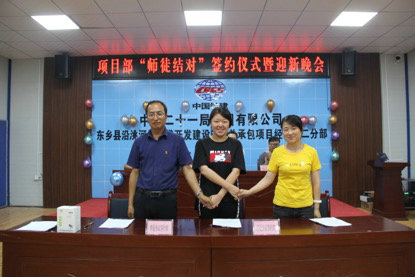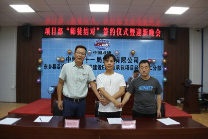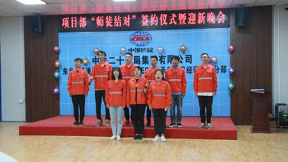 8月1日,中鐵二十一局四公司東鄉(xiāng)縣沿洮河經(jīng)濟(jì)帶開(kāi)發(fā)建設(shè)項(xiàng)目部舉辦“師徒結(jié)對(duì)”簽約儀式暨迎新晚會(huì)。