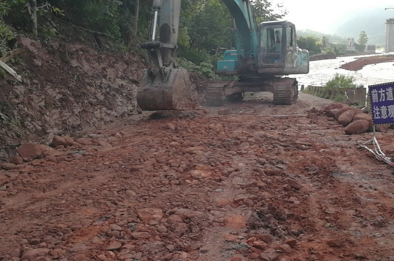 持續(xù)強(qiáng)降雨雨量達(dá)到200多毫米的屏山縣中都鎮(zhèn),中都河嚴(yán)重超出警戒水位,導(dǎo)致多地出現(xiàn)大面積山體滑坡、塌方、泥石流等自然災(zāi)害,中都河沿線道路多處垮塌,道路、電力、通訊一度中斷,部分農(nóng)田淹沒(méi)、許多村民受困。災(zāi)情就是命令,時(shí)間就是生命。項(xiàng)目部當(dāng)機(jī)立斷,分工負(fù)責(zé),從工區(qū)抽調(diào)20多人組成搶險(xiǎn)突擊隊(duì),出動(dòng)大型挖掘機(jī)、裝載機(jī)各1臺(tái)迅速投入抗洪搶險(xiǎn)。