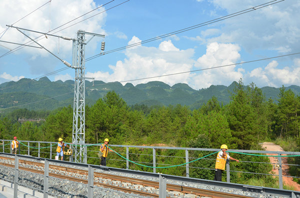 早上7點(diǎn)左右,他帶領(lǐng)著一個(gè)工班,數(shù)十名作業(yè)人員,已經(jīng)來(lái)到位于重慶黔江區(qū)的鐵爐堡特大橋上。在鐵路人的隊(duì)伍里,這一批身手矯健的人,正從事著鐵路站后系統(tǒng)中最苦最累也最危險(xiǎn)的工種之一。平日里,工人們沿著梯車敏捷地爬上供電接觸網(wǎng),在高達(dá)七米的高空中憑借自己熟練高超的技藝,進(jìn)行施工作業(yè)。
