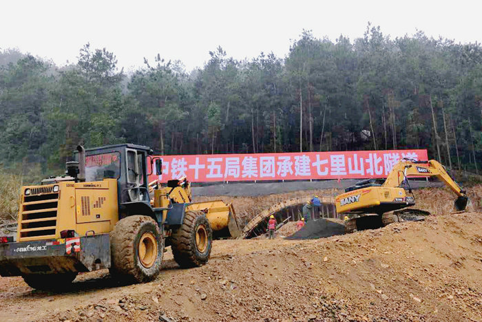 截至8月19日,由公司承建的G353修水?dāng)U建項目七里山北隧道進口掘進破百米大關(guān),各工序循環(huán)作業(yè)進入正常有序施工狀態(tài)。 七里山北隧道全長243米,其中:進出口明洞27米,隧道凈寬12.75米,設(shè)計時速60km。從長度看是一座小隧道,從地質(zhì)條件來說,施工還是有一定難度。該隧道地質(zhì)為Ⅳ、Ⅴ級圍巖。Ⅴ級圍巖為強風(fēng)化頁巖,巖體極破碎,有軟弱夾層泥炭質(zhì)土;Ⅳ級圍巖為中風(fēng)化砂巖,存在裂隙水。