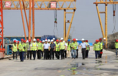 在張扁高速公路有限公司總經(jīng)理代波濤及項目部領(lǐng)導班子成員的陪同下,市委、市政府領(lǐng)導對項目部洪水河大橋的施工現(xiàn)場進行檢查,項目部領(lǐng)導匯報了紅水河大橋整體施工情況及進度計劃。在聽取項目部匯報后,秦禾指出,洪水河大橋作為全標段控制性工程,是項目的施工重點,在施工過程中要確保人員安全及工程質(zhì)量,做到質(zhì)量與進度并存,要牢記“沒有安全、質(zhì)量的進度是零進度”,現(xiàn)場高空作業(yè)必須規(guī)范施工,現(xiàn)場盯崗人員要切實履行自己的職責,盡好自己的義務;洪水河大橋跨度大,施工周期短,項目部在搶工期的同時,一定要做好現(xiàn)場的標準化建設(shè),嚴格落實標準化指南相關(guān)要求,將張扁高速公路打造成省級示范路。