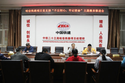 會前,哈佳鐵路項目黨支部委員會根據(jù)中鐵二十三局集團(tuán)黨委、二公司黨委“不忘初心,牢記使命”主題教育要求,認(rèn)真組織研討,并結(jié)合項目部工作實際與特色制定了相關(guān)實施方案與推進(jìn)計劃。在推進(jìn)會上,項目部全體黨員重溫了局集團(tuán)和二公司黨委的相關(guān)文件,黨支部宣傳委員王振東對《哈佳鐵路項目黨支部“不忘初心,牢記使命”主題教育實施方案》做了部署解讀,黨支部紀(jì)檢委員賈廣生對《哈佳鐵路項目部主題教育推進(jìn)計劃安排》做了細(xì)致分析,讓每個黨員以更強(qiáng)烈的政治責(zé)任感和使命感投入到主題教育中,確保主題教育推進(jìn)的扎扎實實。