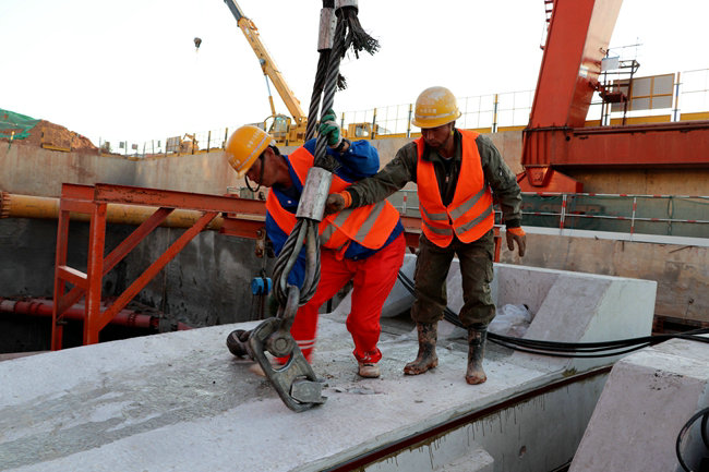 最后一塊混凝土預(yù)制件在吊裝中