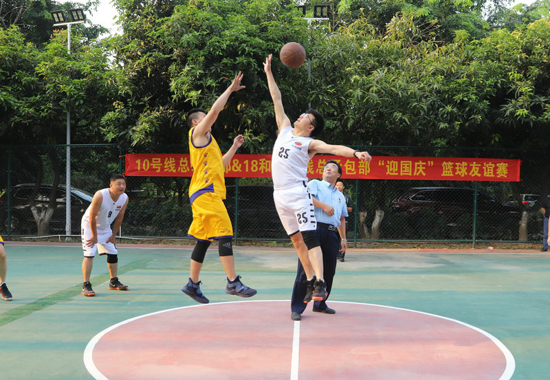 (本站廣州消息,通訊員段緒江、盧建康),在舉國上下隆重慶祝新中國成立70華誕之際,中鐵建華南建設(shè)有限公司廣州市軌道交通十號(hào)線和十八/二十二號(hào)線兩個(gè)總承包部開展了一場(chǎng)別開生面的籃球友誼賽,為祖國生日獻(xiàn)上了一份厚禮。