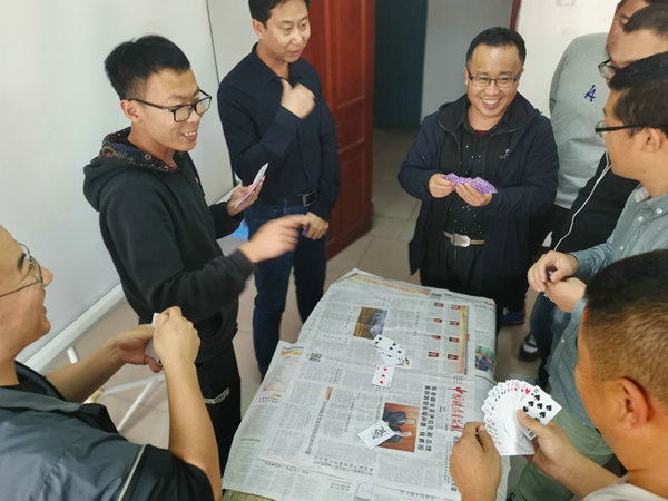 撲克競(jìng)賽是大家喜聞樂見的游戲,三打三的“拍蒼蠅”項(xiàng)目和賽前精心準(zhǔn)備的獎(jiǎng)品更加吸引了眾多員工參與,比賽場(chǎng)上歡聲笑語從未間斷。象棋比賽則是運(yùn)籌帷幄,謀劃千里的比賽項(xiàng)目,比賽中選手都屏氣凝神,但大腦卻異?;钴S,每一步都經(jīng)過周密的計(jì)算,通過娛樂比賽拉近了同事間的距離,加深了彼此之間的友誼。飛鏢比賽卻是技術(shù)含量較高的體育項(xiàng)目,平時(shí)喜歡該項(xiàng)運(yùn)動(dòng)的小伙伴此時(shí)派上了用場(chǎng)。賽場(chǎng)上每一鏢都穩(wěn)扎穩(wěn)打,飛鏢擲出選手們或慶祝、或沮喪、或默默握拳、或輕嘆搖頭,而圍觀的同事也頻頻用掌聲給予選手加油鼓勁,一個(gè)高分環(huán)往往會(huì)贏來場(chǎng)邊觀眾的陣陣喝彩。五子棋比賽更是此次活動(dòng)的重頭戲,因?yàn)榇隧?xiàng)比賽更加大眾化,項(xiàng)目部全體員工都參與了此次比賽,棋盤上選手們都使出了洪荒之力,黑白子之間不斷變換,充滿著驚奇,稍有不慎,就滿盤皆輸,比賽一直持續(xù)了2個(gè)小時(shí)才落下帷幕。