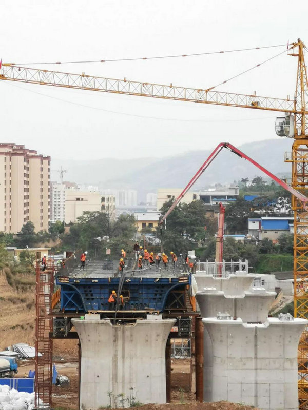 此次澆筑的是三十甸子大橋左幅2號(hào)至3號(hào)墩現(xiàn)澆梁,設(shè)計(jì)跨度為32.6米簡(jiǎn)支箱梁,設(shè)計(jì)方量為306立方米,采用螺旋管立柱貝雷支架法施工,澆筑前,項(xiàng)目管理人員對(duì)施工現(xiàn)場(chǎng)作業(yè)人員進(jìn)行嚴(yán)格的安全培訓(xùn)和技術(shù)交底,嚴(yán)格管理、精心組織,明確責(zé)任分工,各盡職守、各負(fù)其責(zé),落實(shí)到人,做到超前謀劃以保證施工的有序進(jìn)行;經(jīng)過8小時(shí)的連續(xù)鏖戰(zhàn),首孔現(xiàn)澆梁圓滿完成澆筑,標(biāo)志著橋梁主體工程由下部結(jié)構(gòu)向上部結(jié)構(gòu)有序推進(jìn),為預(yù)計(jì)2020年10月1日建成通車奠定了堅(jiān)實(shí)的基礎(chǔ)。(附圖)