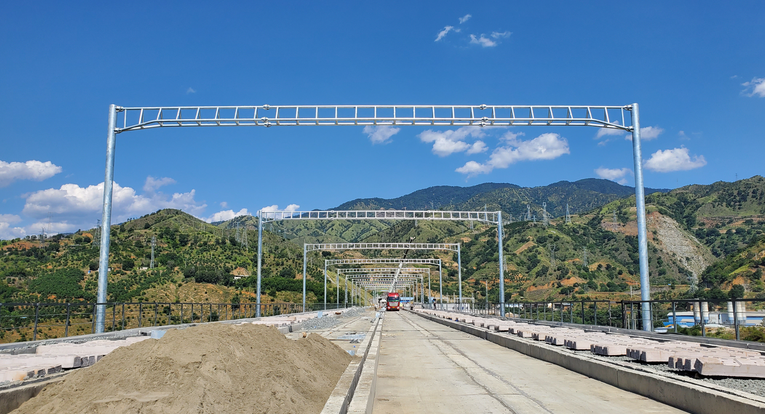 成昆鐵路米攀段強(qiáng)電工程由中鐵武漢電氣化局承建,其中硬橫梁的架設(shè)是接觸網(wǎng)施工中的一道關(guān)鍵工序,此次鹽邊車站架設(shè)的硬橫梁跨度大,十分笨重。施工人員在組立硬橫梁時,不僅要忍受烈日帶來的高溫,還要克服高空作業(yè)所帶來的種種困難和不便。但在困難面前,他們依然選擇迎難而上,在他們的手中,硬橫梁一根根的橫立于空中。