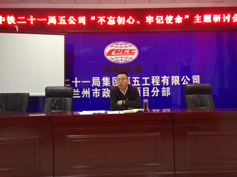10月15日,中鐵二十一局五公司黨委副書記、總經(jīng)理王富武以“黨建工作”引領(lǐng)施工生產(chǎn),樹立“大成本”理念,改變承包模式,干好在建工程為主題在蘭州聯(lián)合黨支部進(jìn)行“不忘初心、牢記使命”主題教育調(diào)研工作。