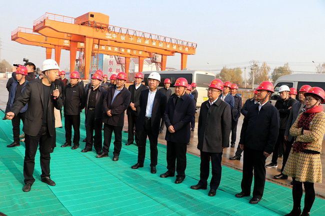 江濤向視察人員匯報(bào)西延線工程建設(shè)情況