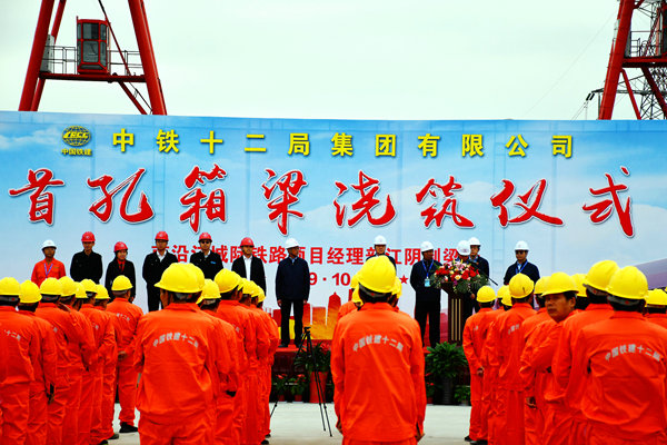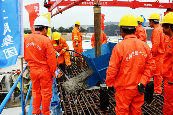 10月15日,伴隨著迎風(fēng)招展的彩旗和響亮的鞭炮聲以及罐車等機(jī)械的轟鳴聲,中鐵十二局集團(tuán)南沿江城際鐵路項(xiàng)目經(jīng)理部江陰制梁場(chǎng)首孔32米箱梁正式澆筑,標(biāo)志著中鐵十二局集團(tuán)南沿江城際鐵路6標(biāo)段的江陰制梁場(chǎng)具備了生產(chǎn)能力,已進(jìn)入了正常的施工生產(chǎn),為后續(xù)展開全面施工和按期架梁堅(jiān)定了堅(jiān)實(shí)的基礎(chǔ)。