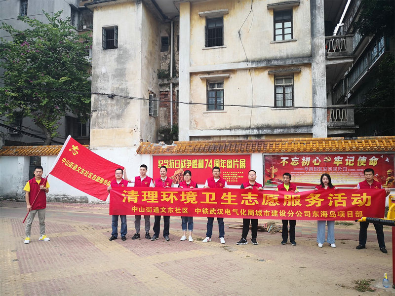 10月31日,中鐵武漢電氣化局城市建設分公司湛江東海島項目部與湛江市赤坎區(qū)文東社區(qū)聯(lián)合組積開展清理環(huán)境衛(wèi)生志愿服務活動,主要工作清理赤坎體育場圍墻及宣傳欄周邊的雜草、煙頭、垃圾,并擦拭宣傳欄的污跡、灰塵。