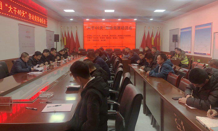 勞動(dòng)競(jìng)賽動(dòng)員會(huì)現(xiàn)場(chǎng) 魏總對(duì)本次勞動(dòng)競(jìng)賽活動(dòng)提出七點(diǎn)要求:一是要統(tǒng)一思想,提高認(rèn)識(shí),堅(jiān)定永爭(zhēng)第一的信心,開(kāi)好局、起好步、謀好篇,為2020年快速形成生產(chǎn)規(guī)模和進(jìn)度,全面引領(lǐng)全線奠定堅(jiān)實(shí)基礎(chǔ);二是統(tǒng)籌協(xié)作,合理安排,確保節(jié)點(diǎn)目標(biāo)任務(wù)的完成;三是群防群治,常抓不懈,全面落實(shí)安全生產(chǎn)責(zé)任;四是規(guī)范施工,精細(xì)管理,嚴(yán)格抓好施工質(zhì)量,為打造亮點(diǎn)、形成品牌,創(chuàng)建“品質(zhì)工程”、“綠色工程”打下堅(jiān)實(shí)的基礎(chǔ);五是強(qiáng)化服務(wù),盡職盡責(zé),確保后勤保障到位,牢固樹(shù)立“盈利光榮、虧損可恥”的理念,爭(zhēng)創(chuàng)“集團(tuán)公司、股份公司責(zé)任成本管理示范項(xiàng)目”;六是加強(qiáng)黨建,強(qiáng)化宣傳,努力助推競(jìng)賽活動(dòng),確保大干期間全體參建人員“在狀態(tài)、有激情、敢擔(dān)當(dāng)、重落實(shí)、守規(guī)矩”;七是狠抓落實(shí),嚴(yán)格考核,切實(shí)調(diào)動(dòng)積極性,為干好項(xiàng)目、干贏項(xiàng)目,實(shí)現(xiàn)項(xiàng)目創(chuàng)譽(yù)創(chuàng)效雙豐收。