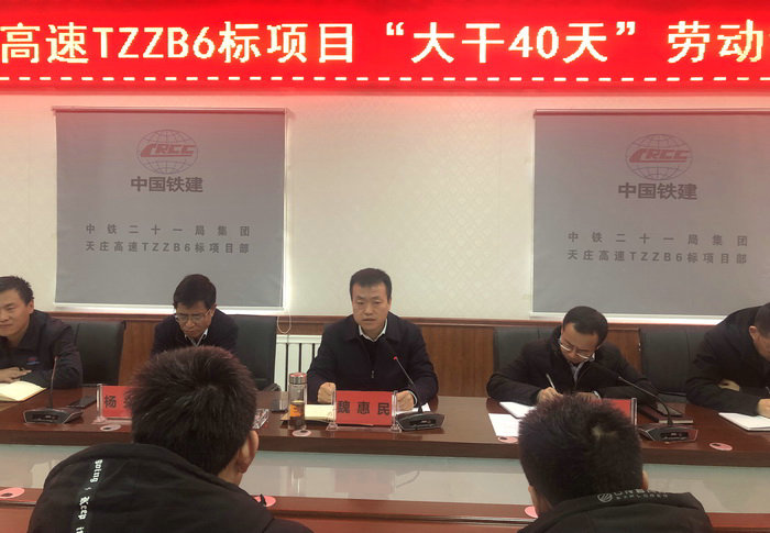 本網(wǎng)甘肅天水12月11日訊(通訊員 曹倩 彭英)12月9日上午8點(diǎn),中鐵二十一局集團(tuán)天莊高速TZZB6標(biāo)項(xiàng)目召開(kāi)了“大干40天”勞動(dòng)競(jìng)賽動(dòng)員會(huì),會(huì)議由項(xiàng)目常務(wù)副經(jīng)理柳吉煥主持,項(xiàng)目部領(lǐng)導(dǎo)、全體人員、工區(qū)、班組及勞務(wù)隊(duì)負(fù)責(zé)人、現(xiàn)場(chǎng)主要管理人員參會(huì)。