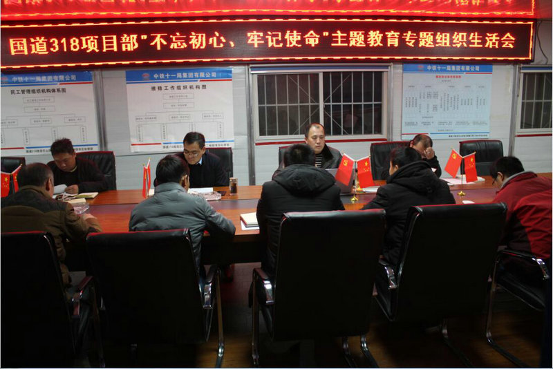 國道318項目部主題教育專題組織生活會現(xiàn)場