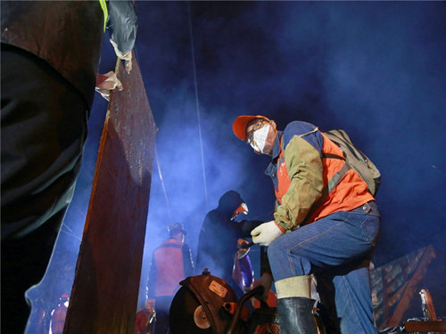 員工們正在緊張忙碌地進(jìn)行長(zhǎng)軌途卸作業(yè)