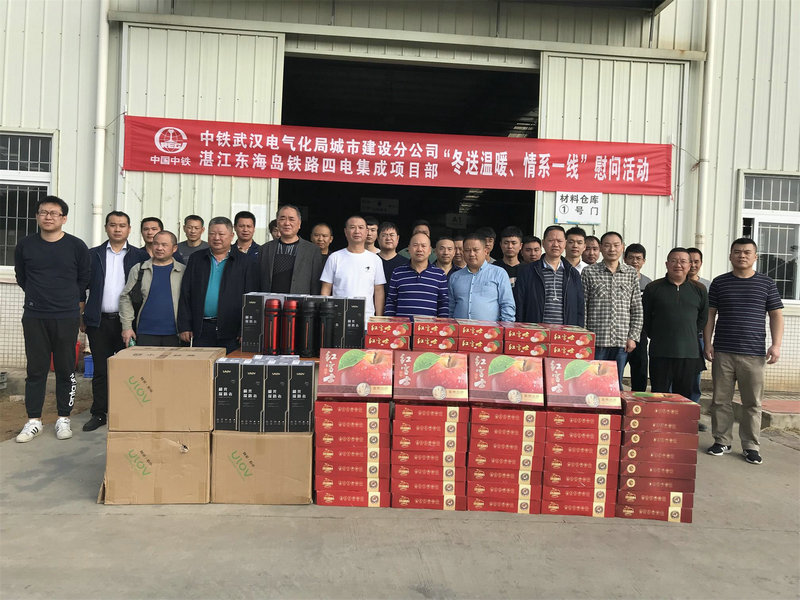 在2020年元旦、春節(jié)來臨之際,基層施工一線員工的冷暖牽動(dòng)著公司領(lǐng)導(dǎo)的心。12月18日上午,中鐵武漢電氣化局城市建設(shè)分公司黨委書記何明全、黨群部部長周岳、黨群部劉南、紀(jì)委監(jiān)察審計(jì)部副部長唐輝一行四人來到湛江東海島項(xiàng)目部,為堅(jiān)守一線的員工送去慰問品和新春祝福。