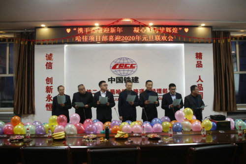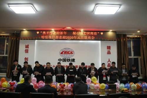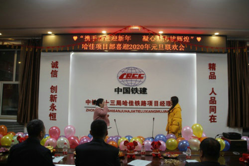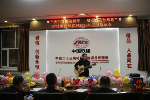 “我和我的祖國一刻也不能分割,無論我走到哪里 都流出一首贊歌……”領(lǐng)導班子們嘹亮的歌聲在中鐵二十三局二公司哈佳鐵路項目部八樓會議室響起,拉開了項目部“攜手奮進迎新年,凝心聚力續(xù)輝煌”元旦聯(lián)歡的序幕。