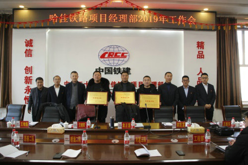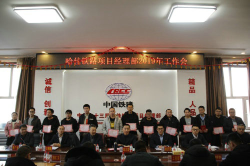 工作會由二公司哈佳鐵路項目部黨支部副書記王維振主持。會上,常務(wù)副經(jīng)理郭慶富做了題為《強化基礎(chǔ),規(guī)范管理;抓住機遇,順勢而為——為延續(xù)哈佳項目榮譽兌現(xiàn)年度目標而努力奮斗》的工作報告,回顧了2019年哈佳鐵路項目部獲得的一項項驕人成績與創(chuàng)效亮點,總結(jié)了2019年施工過程中存在的不足。他提出要及時發(fā)現(xiàn)基礎(chǔ)建設(shè)的薄弱之處,抓住施工機遇,順勢發(fā)力而為,正確面對項目面臨的形勢,不斷完善自我,提升思想理念,為2020年工作打好基礎(chǔ)??偨?jīng)濟師賈廣生在會上通報了2019年度所獲得的由黑龍江省建筑業(yè)協(xié)會、股份公司、集團公司、哈佳公司、二公司、哈佳項目部等表彰的先進集體、先進個人名單,并為2019年項目部先進(生產(chǎn))工作者頒發(fā)了榮譽證書。賈廣生指出每個人要有“功成不必在我,功成必定有我”的精神和擔當,繼續(xù)在工作中發(fā)揚敬業(yè)有為和釘釘子精神,將工作藍圖繪制到底。