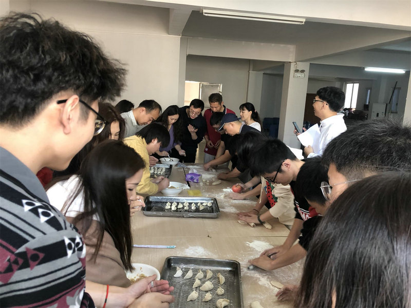由賽前抽簽組成的3個參賽隊(duì)進(jìn)行了比賽。由評委按照數(shù)量和質(zhì)量進(jìn)行評分?;顒蝇F(xiàn)場熱鬧非凡,活動剛剛宣布開始,各小組成員立刻分工合作,和面、切面、搟餃子皮、包餃子,紛紛大顯身手,忙的不亦樂乎。“清水飄芙蓉,元寶落玉盤”,大家有說有笑,相互切磋包餃子的技巧,彼此比較著餃子的形狀,現(xiàn)場歡聲不斷,笑語迭起。比賽最后,所有參與活動人員共同享用熱騰騰的美味餃子作為午餐,品味自己的勞動成果。