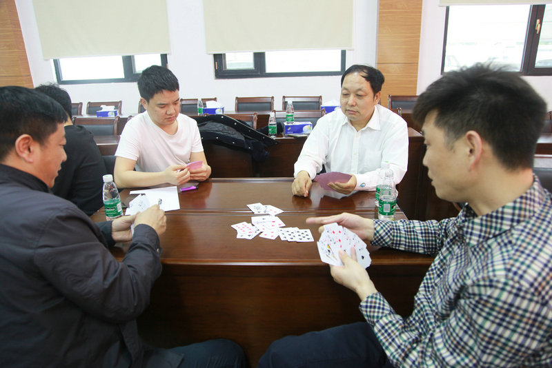 與此同時,在總承包部400平米的報告大廳里,綜合棋牌比賽把活動推向了高潮。摜蛋比賽先后通過小組賽、復賽、半決賽和決賽等方式,最后冠亞軍在20多人的比賽中脫穎而出。斗地主比賽每3人一組進行,按照斗地主規(guī)則進行,自行積分,最后累加各自成績,經(jīng)過小組賽、半決賽和決賽等三道關口,頂尖選手浮出水面。雙扣比賽每組4人,自行組合和抽簽組合同步進行,按照雙扣規(guī)則,大家在比賽中步步高升,直到頂點。跳棋比賽分設2人組和3人組,以10局為賽程,積分多即獲得冠軍。五子棋比賽受到不少職工的青睞,不但參賽人員多,而且圍觀人員也多,既有聚精會神的觀看,也有熱心的指導。象棋比賽屬于高手對決,比智慧、比思考,雙方隊員沉著冷靜,你來我往,每一步都險象環(huán)生。和象棋不同的是飛鏢比賽,熱鬧非凡,掌聲不斷,短頻快的比賽節(jié)奏引來了一波又一波選手參賽,成為了報告廳綜合比賽的一道風景。