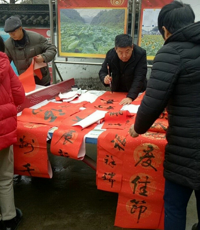 在與蓮花村委會開展的“迎新春、送春聯(lián)、送福字”活動中,項目部自帶筆墨紙硯,由辦公室主任王克亮現(xiàn)場為當(dāng)?shù)厝罕姇鴮懘郝?lián)。一幅幅春聯(lián)墨香四溢,愛心涌動,洋溢著濃濃的年味兒和喜氣洋洋的氣氛,當(dāng)村民們拿著一幅幅吉祥如意充滿美好寓意的春聯(lián)和大紅福字時,心中特別高興和喜悅,感受到了節(jié)日的喜慶和新春祝福。據(jù)統(tǒng)計,此次活動共為村民寫春聯(lián)60余幅。為您推薦
