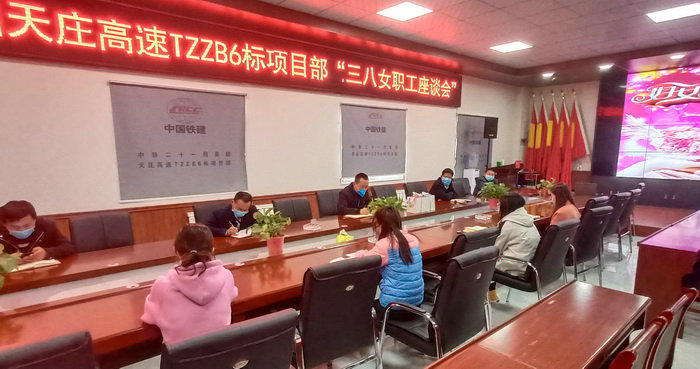 當日下午,中鐵二十一局天莊高速TZZB6標項目會議室,項目班子領導及全體女職工,佩戴口罩,拉開距離就坐,召開了“疫”樣“三八”婦女節(jié)女職工座談會。