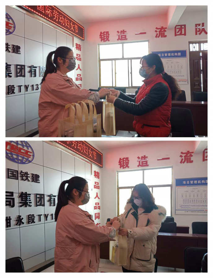 為項(xiàng)目部女職工分發(fā)節(jié)日禮物