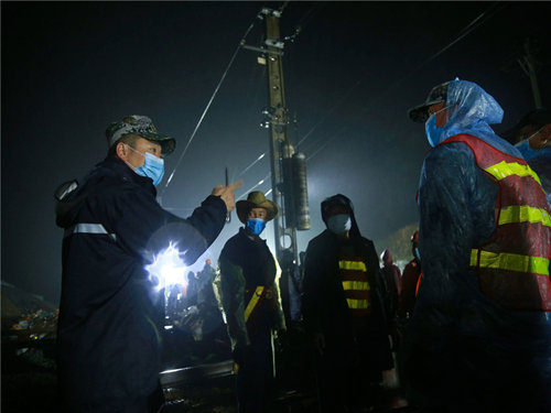 班子成員現場精心指導施工