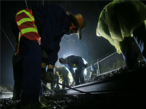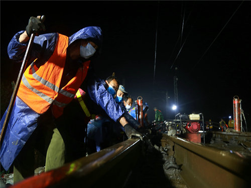 3月9日19時55分,成都鐵路局集團管內的偏遠小站迎來了一批特殊的人群,他們“掩頭遮面”,手持“利刃”,佇立在傾盆而瀉地大雨中靜靜等候。5分鐘后,隨著一聲響亮的“沖鋒號”響起,蓄勢多時的“官兵”們瞬時沖向了“戰(zhàn)場”,一時間,線路上機械轟鳴,號聲連天。自此,由中鐵一局新運公司承擔的渝懷二線鐵路官莊車站擴能改造工程“戰(zhàn)役”徹底打響。