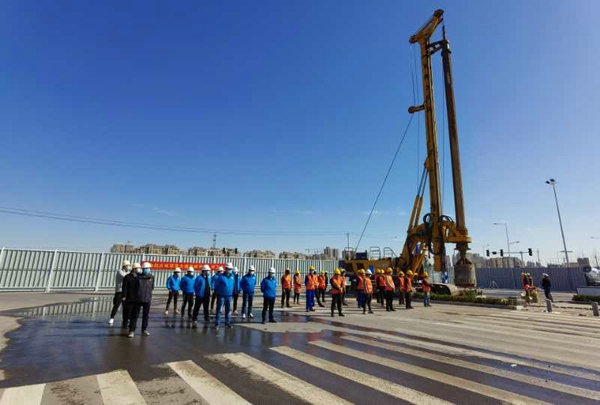 圖為:3月15日,滎陽市滎澤大道上跨鄭西高鐵立交工程首顆鉆孔樁開鉆現(xiàn)場。