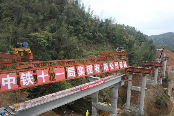銅萬項(xiàng)目首片T梁架設(shè)完成