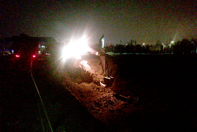 圖為3月29日安陽(yáng)象道物流國(guó)際專用線項(xiàng)目工地夜間澆筑現(xiàn)場(chǎng)