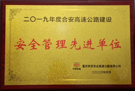 (本網(wǎng)合川訊)近日,從中鐵二十三局四公司合安高速土建三標(biāo)項(xiàng)目經(jīng)理部發(fā)來好消息,該項(xiàng)目部2019年度的安全生產(chǎn)工作得到業(yè)主充分肯定,喜獲重慶鐵發(fā)雙合有限公司(業(yè)主)授予的“2019年度安全管理先進(jìn)單位”稱號(hào)。