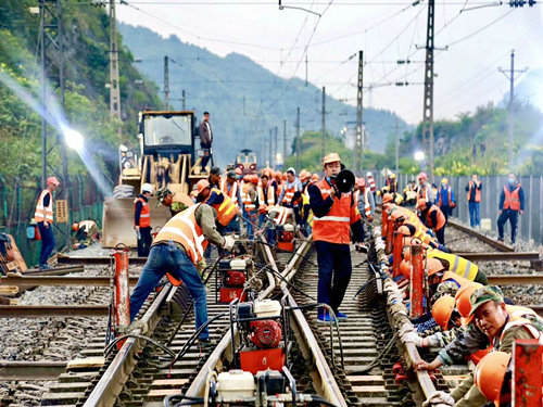 為確保此次封鎖施工圓滿完成,在站改前期,項目部多次召開專題會議,指派各級部門負責人前往現(xiàn)場勘察,最終根據(jù)調(diào)查結(jié)果,不斷組織協(xié)調(diào)施工進度,優(yōu)化細化施工方案,科學調(diào)度施工運輸,對工程進度和安全質(zhì)量全程實時監(jiān)控。同時針對本次施工,項目部還制定下發(fā)了詳細的技術交底方案,責任到點,細化到人,并在保障好故障應急和吃住行的前提下,包聘多臺大巴從管內(nèi)沿線調(diào)集充裕人員,全力克服了人員物資緊張,施工任務繁重,交叉作業(yè)頻繁,作業(yè)場地狹小等系列不利因素,確保了該站站場改造工程的安全和暢通。