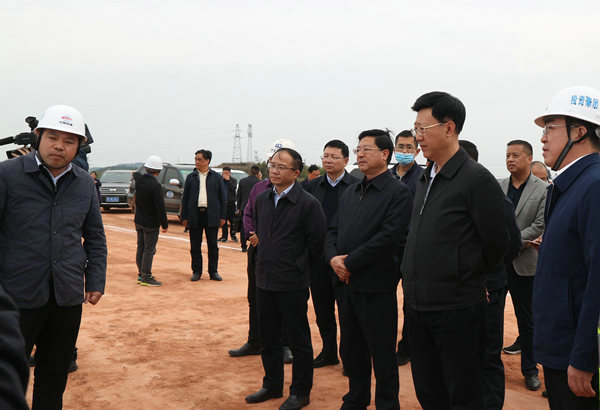 4月9日,四川省交通運(yùn)輸廳黨組書記、廳長羅佳明一行蒞臨中鐵十一局二公司德都高速公路DDTJ2標(biāo)段施工現(xiàn)場調(diào)研項(xiàng)目建設(shè)情況,德陽市委副書記、市長何禮,德都高速公路有限公司董事長童鵬、總經(jīng)理董國楨等陪同調(diào)研。