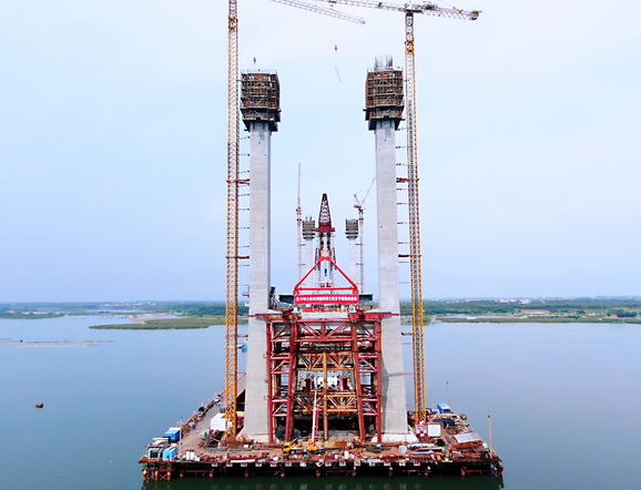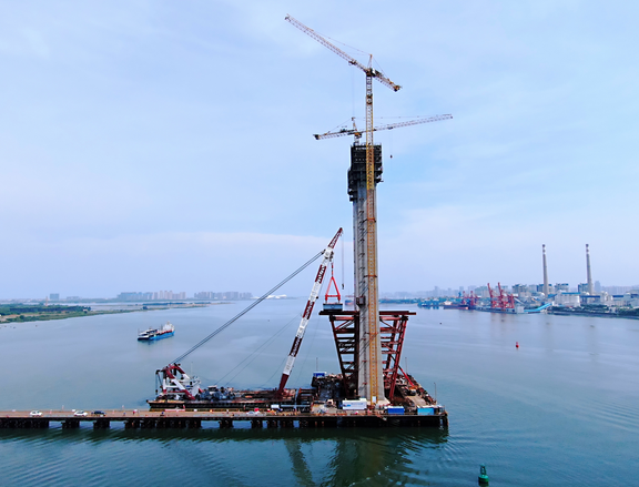 代強(qiáng)波告訴記者,為減少疫情和項(xiàng)目前期主橋方案變更等因素對(duì)工期的影響,項(xiàng)目部舍棄了“先塔后梁”的施工方案,改成了“塔梁同步”施工。