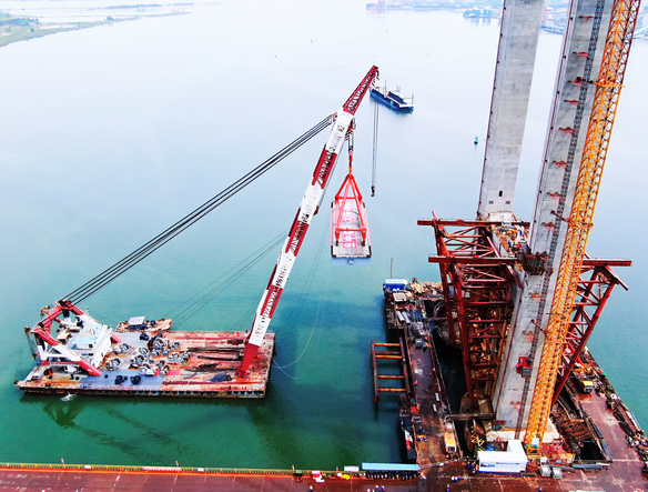 調(diào)順跨海大橋首片主梁成功架設(shè) 吹響“大干100天”沖鋒號(hào)