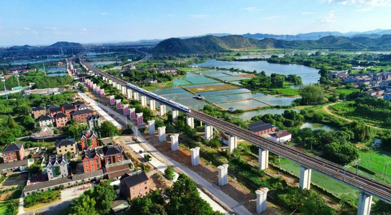 圖片說(shuō)明:湖杭鐵路施工現(xiàn)場(chǎng)