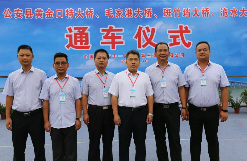 2018年5月下旬,在竣工日期臨近之際,項(xiàng)目部員工在經(jīng)理陳偉、副書(shū)記張國(guó)杰、總工儲(chǔ)定海、副經(jīng)理陳建寶的帶領(lǐng)下,加班加點(diǎn)奮力突擊兩個(gè)月,于7月28日達(dá)到驗(yàn)收標(biāo)準(zhǔn),為四座大橋按期通車奠定了實(shí)堅(jiān)實(shí)的基礎(chǔ)。公安四橋項(xiàng)目部在荊州地區(qū)展示了良好的企業(yè)形象,受到荊州市、公安縣委、縣政府、交通局領(lǐng)導(dǎo)的高度評(píng)價(jià)。公安縣交通運(yùn)輸局局長(zhǎng)孫家軍在致辭中,熱切希望中鐵二十一局三公司繼續(xù)參與公安縣的交通工程建設(shè),為公安人民再作新的更大的貢獻(xiàn)。