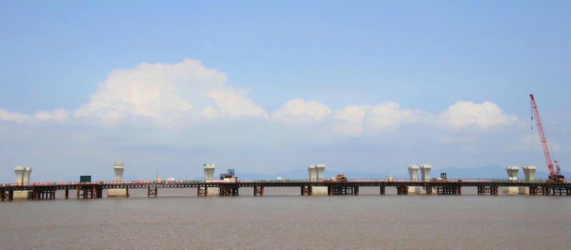 濱?;ネㄈL9705米,由主線拼寬橋和4座金塘大橋拼寬橋和8座匝道橋組成,工藝復雜、工序繁鎖,且3次上跨、4次下穿日均車流量達6萬輛的金塘大橋,海上作業(yè),施工難度大,潛在的安全隱患多,備受各方高度關注。在主線拼寬橋施工中,該項目部推出棧橋先行、樁基與承臺緊隨、墩身“壓軸”的分步驟、工序銜接緊密、多點擊破、全力合圍等“組合拳”,為贏得施工主動、圓滿完成主線拼寬橋80座橋墩發(fā)揮了作用。與此同時,項目部實行班子成員分工負責制,責、權、利與安全質量、進度產值和環(huán)保掛鉤,獎罰嚴明,對履職不力、責任心不強者,調整其崗位,對其他管理人員也如此。其次,在每季度勞動競賽總結評比中,按照競賽方案,組織部門負責人以上領導對各施工隊進行打分,排在前5名的單位給予重獎,凡完不成任務者,將受到重罰。
