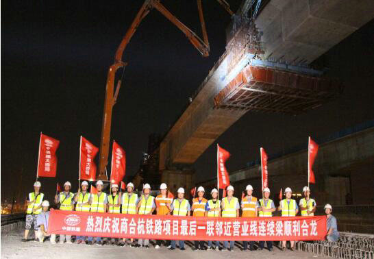 8月2日清晨,施工現(xiàn)場傳來捷報,中鐵建大橋工程局集團三公司商合杭鐵路項目最后一聯(lián)鄰近營業(yè)線連續(xù)梁成功合龍,結(jié)束了近500個日夜的奮斗,圓滿完成管段內(nèi)所有鄰近營業(yè)線連續(xù)梁施工。