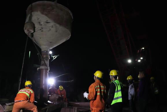余杭特大橋首根百米深樁澆筑施工現(xiàn)場