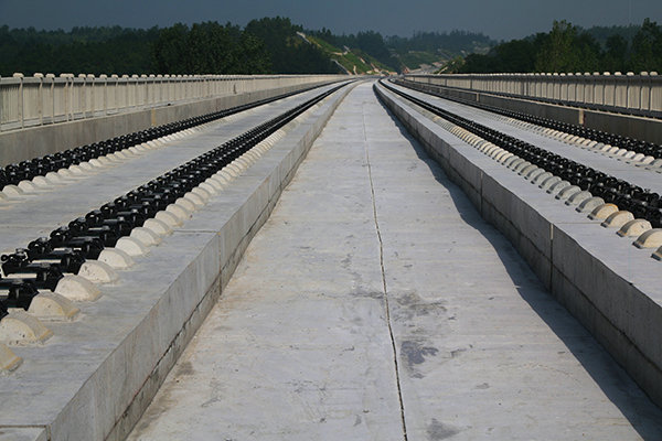 圖為漢十高鐵1標(biāo)無砟軌道施工完成