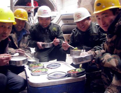 萬事俱備,大干風(fēng)起云涌!由項目書記朱月根、盾構(gòu)一隊書記劉桂忠?guī)ьI(lǐng)的“黨員突擊隊”;陳石、槐景博、汪浩帶領(lǐng)的“青年突擊隊”盡展風(fēng)采。盾構(gòu)機始發(fā)后,朱月根、劉桂忠并成了“后勤保障部長”,他們將形之有效的思想政治工作送到職工宿舍、施工現(xiàn)場,把職工的精神氣兒提振得烘熱高漲。