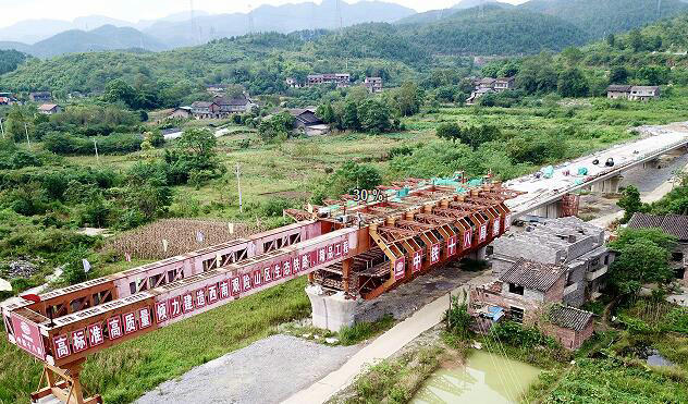 中鐵十八局集團重黔高鐵6標(biāo)移動模架橋梁施工現(xiàn)場( 田緣圓 攝)