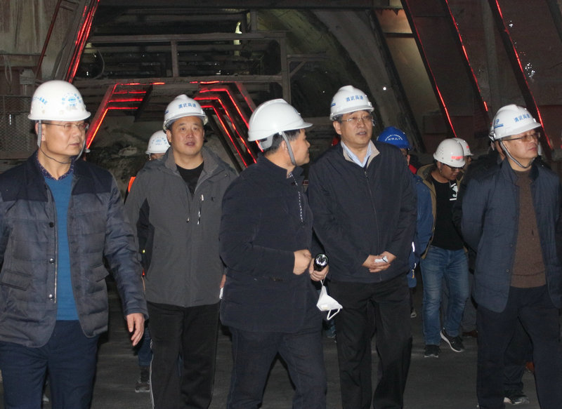 甘肅省公航旅董事長(zhǎng)、黨委書記榮志遠(yuǎn)(左四)在3#斜井掌子面觀摩