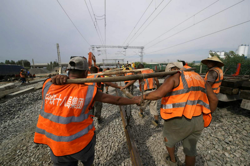 5、中鐵十八局集團五公司建筑公司承建的唐曹鐵路施工現(xiàn)場(白雯 伍振 攝)