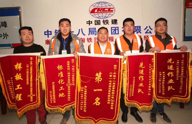 今年6月8日,在進行津山鐵路下行線改建施工時,因施工緊鄰既有線,道岔無法同時鋪設(shè),1500余名建設(shè)者通過用枕木搭設(shè)預(yù)鋪好道岔,待“天窗”時間開始后將軌道平移至指定位置,經(jīng)過3個半小時奮戰(zhàn),完成4處近800米的軌道撥接施工,為唐曹鐵路鋪軌打開工作面,為全線6月30日實現(xiàn)通車奠定基礎(chǔ)。唐曹項目部榮獲業(yè)主唐曹鐵路公司勞動競賽“先進班組”、“標準化工地”、“安全生產(chǎn)知識競賽”第一名、“綜合考評”第一名和河北省鐵路管理局、河北省鐵路工程質(zhì)量監(jiān)督站授予的“工地標準化試驗室”等榮譽稱號。